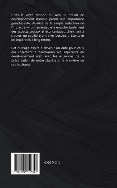 Dans le vaste monde du web, la notion de développement durable prend une importance grandissante. Au-delà de la simple réduction de l'impact environnemental, elle englobe également des aspects sociaux et économiques, cherchant à trouver un équilibre entre les besoins présents et les impératifs à long terme. Cet ouvrage aspire à devenir un outil pour ceux qui cherchent à harmoniser les impératifs du développement web avec les exigences de la préservation de notre planète.