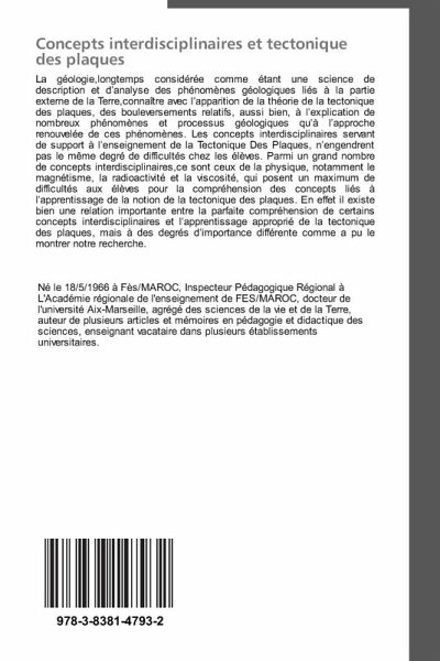 La géologie,longtemps considérée comme étant une science de description et d analyse des phénomènes géologiques liés à la partie externe de la Terre,connaître avec l apparition de la théorie de la tectonique des plaques, des bouleversements relatifs, aussi bien, à l explication de nombreux phénomènes et processus géologiques qu à l approche renouvelée de ces phénomènes. Les concepts interdisciplinaires servant de support à l enseignement de la Tectonique Des Plaques, n engendrent pas le même degré de difficultés chez les élèves. Parmi un grand nombre de concepts interdisciplinaires,ce sont ceux de la physique, notamment le magnétisme, la radioactivité et la viscosité, qui posent un maximum de difficultés aux élèves pour la compréhension des concepts liés à l apprentissage de la notion de la tectonique des plaques. En effet il existe bien une relation importante entre la parfaite compréhension de certains concepts interdisciplinaires et l apprentissage approprié de la tectonique des plaques, mais à des degrés d importance différente comme a pu le montrer notre recherche.