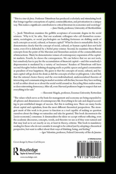 Borrowing terminology from the economic discipline'specifically the concept of "capital" has led to an abundance of new terms in the social sciences: human capital, social capital, and cultural capital, to name the most prominent representatives on an ever-growing list. In this interdisciplinary transaction, the concept is borrowed and the original meaning extended until the new concepts often have nothing left in common with their initial referents. Here Jacek Tittenbrun offers a critical analysis of human, social, and cultural capital on the basis of their uses and misuses across a wide range of social sciences, simultaneously revealing the source of conceptual diffusion in the real world. He presents a two-pronged analysis of an intellectual fashion popular in the social sciences and offers a critical analysis of a range of concepts constructed around the common core of "capital." The analysis is innovative, as it is underpinned by a theoretical framework rooted in economic sociology and the concept of ownership in particular. The approach is one of the sociology of knowledge coupled with a substantive critique-application of the given concepts. The volume reveals a range of processes in the real world that account for the conceptual diffusion. The general reader will be drawn to the discussion in the second half of the book, a study of a variety of relatable real life situations that illuminate privatization and commodification in our lives.