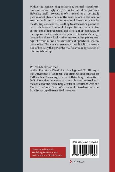 Within the context of globalization, cultural transformations are increasingly analyzed as hybridization processes. Hybridity itself, however, is often treated as a specifically post-colonial phenomenon. The contributors in this volume assume the historicity of transcultural flows and entanglements; they consider the resulting transformative powers to be a basic feature of cultural change. By juxtaposing different notions of hybridization and specific methodologies, as they appear in the various disciplines, this volume's design is transdisciplinary. Each author presents a disciplinary concept of hybridization and shows how it operates in specific case studies. The aim is to generate a transdisciplinary perception of hybridity that paves the way for a wider application of this crucial concept