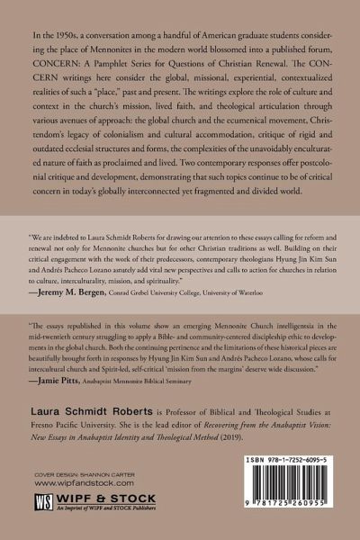 In the 1950s, a conversation among a handful of American graduate students considering the place of Mennonites in the modern world blossomed into a published forum, CONCERN: A Pamphlet Series for Questions of Christian Renewal. The CONCERN writings here consider the global, missional, experiential, contextualized realities of such a ""place,"" past and present. The writings explore the role of culture and context in the church's mission, lived faith, and theological articulation through various avenues of approach: the global church and the ecumenical movement, Christendom's legacy of colonialism and cultural accommodation, critique of rigid and outdated ecclesial structures and forms, the complexities of the unavoidably enculturated nature of faith as proclaimed and lived. Two contemporary responses offer postcolonial critique and development, demonstrating that such topics continue to be of critical concern in today's globally interconnected yet fragmented and divided world.