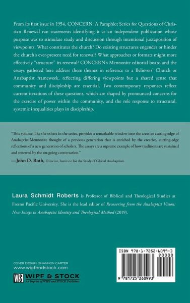 From its first issue in 1954, CONCERN: A Pamphlet Series for Questions of Christian Renewal ran statements identifying it as an independent publication whose purpose was to stimulate study and discussion through intentional juxtaposition of viewpoints. What constitutes the church? Do existing structures engender or hinder the church's ever-present need for renewal? What approaches or formats might more effectively ""structure"" its renewal? CONCERN's Mennonite editorial board and the essays gathered here address these themes in reference to a Believers' Church or Anabaptist framework, reflecting differing viewpoints but a shared sense that community and discipleship are essential. Two contemporary responses reflect current iterations of these questions, which are shaped by pronounced concerns for the exercise of power within the community, and the role response to structural, systemic inequalities plays in discipleship.