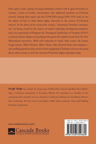 Once upon a time a group of young Anabaptist scholars took it upon themselves to convene a series of incisive conversations that addressed questions of Christian renewal. Among other topics that the CONCERN group (1955-1971) took on was the subject of how to think about higher education in the context of Christian renewal. At the dawn of the twenty-first century, "intentional Christian communities" are being created in the context of student leadership development programs, and a new generation of Programs for Theological Exploration of Vocation (PTEV) at church related colleges are providing mini-grants for students involved in the New Monasticism movement. With such endeavors in mind, these essays--by Joanne Zerger Janzen, Walter Klassen, Albert Meyer, John Howard Yoder and company--raise probing questions that remain worth engaging by Christians who are concerned about what it means to seek the renewal of Christian higher education today.