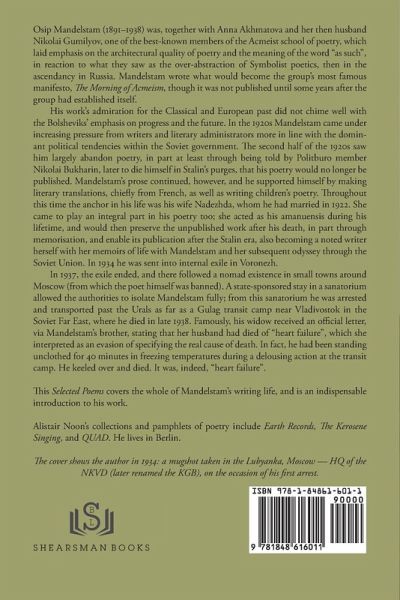 An extensive sampling of the whole of Mandelstam's career from his first collection up to the late poems that were memorised by his wife, when it was too dangerous to have them written down. One of the great poets of the first half of the 20th century, Mandelstam is one of the figures who needs to be translated and re-translated, being too important to be taken for granted.