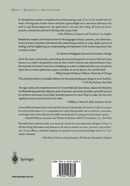 Concert Halls and Opera Houses sets forth the harvest of six decades of intensive study of acoustics for music performance. It is a comprehensive (and indispensable) aid to architects, musicians and design teams who tackle the incredibly daunting task of creating new performance spaces.