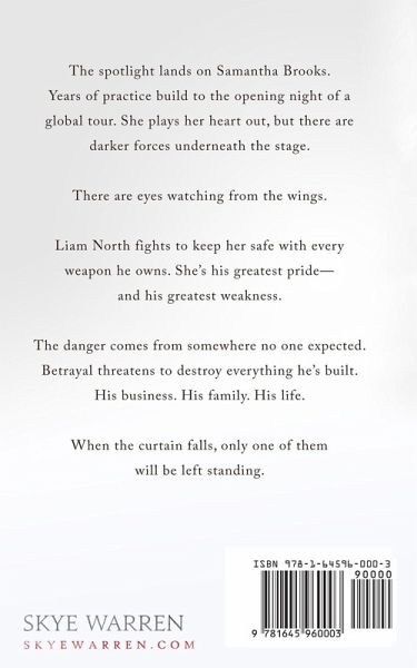 The spotlight lands on Samantha Brooks. Years of practice build to the opening night of a global tour. She plays her heart out, but there are darker forces underneath the stage. There are eyes watching from the wings. Liam North fights to keep her safe with every weapon he owns. She's his greatest pride-and his greatest weakness. The danger comes from somewhere no one expected. Betrayal threatens to destroy everything he's built. His business. His family. His life. When the curtain falls, only one of them will be left standing. "Swoon-worthy, forbidden, and sexy, Liam North is my new obsession." - New York Times bestselling author Claire Contreras