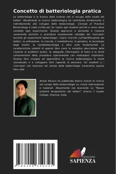 La batteriologia è la branca della scienza che si occupa dello studio dei batteri. Attualmente la ricerca batteriologica ha contribuito direttamente o indirettamente allo sviluppo delle biotecnologie. Concept of Practical Bacteriology è stato scritto per far capire agli studenti perché e come viene condotto ogni esperimento. Questo approccio a domande e risposte comprende tecniche e procedure ampiamente utilizzate dai ricercatori durante gli esperimenti batteriologici. Copre ricerche sull'identificazione dei batteri, la coltivazione, la crescita, il metabolismo, la genetica, la tecnologia degli enzimi, la nanobiotecnologia e altre aree fondamentali. Le caratteristiche salienti di questo libro sono la semplice descrizione delle risposte ai problemi pratici, le adeguate informazioni di base e la facile comprensione della procedura sperimentale con motivazioni importanti. Questo libro insegna ad apprendere la ricerca batteriologica in modo concettuale e a sviluppare forti capacità di pensiero. Gli studenti e i ricercatori che lavorano nel campo della batteriologia troveranno questo libro utile.