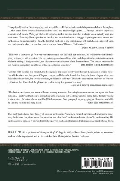 This lively text offers a brief history of Western civilization. Providing a focused narrative and interpretive structure, Pavlac uses the joined terms "supremacies and diversities" to develop themes of conflict and creativity. His easily accessible yet deeply knowledgeable book covers the basic information that all educated adults should know.