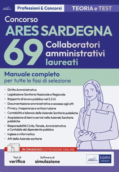 Manuale completo per la preparazione al concorso per Collaboratori amministrativi - ARES (Azienda Regionale Salute) Sardegna. Il testo tratta gli argomenti indicati nel bando di concorso per la prova scritta e per la prova orale: Diritto amministrativo; Legislazione Sanitaria Nazionale, Regionale e organizzazione delle Aziende Sanitarie; Disciplina del rapporto di lavoro pubblico nel S.S.N.; Nozioni generali in tema di documentazione amministrativa, accesso agli atti; Normativa in materia di trattamento e protezione dei dati personali, trasparenza ed anticorruzione; Principi in materia di contabilità e bilancio delle Aziende Sanitarie pubbliche; Legislazione in materia di acquisizione di beni e servizi nelle Aziende Sanitarie pubbliche; La Responsabilità Civile, Penale, Amministrativa e Contabile del dipendente pubblico; Inglese e Informatica. In appendice è riportata una guida alla redazione degli atti e una raccolta della modulistica di maggiore utilizzo in ambito sanitario, per affrontare al meglio la prova pratica. Tra i contenuti web sono disponibili una raccolta di quesiti di verifica a risposta multipla e un software di esercitazione. Das Urheberrecht an bibliographischen und produktbeschreibenden Daten und an den bereitgestellten Bildern liegt bei Informazioni Editoriali, I.E. S.r.l., oder beim Herausgeber oder demjenigen, der die Genehmigung erteilt hat. Alle Rechte vorbehalten.