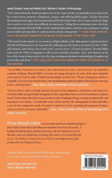Concrete Boxes: Mizrahi Women on Israel's Periphery offers a rich depiction of contemporary life in one marginalized development town in the Israeli Negev. Placing the stories of five women at the center, author Pnina Motzafi-Haller depicts a range of creative strategies used by each woman to make a meaningful life within a reality of multiple exclusions. These limitations, Motzafi-Haller argues, create a "concrete box," which, unlike the "glass ceiling" of the liberal feminist discourse, is multi-dimensional and harder to break free from. As the stories unfold, the reader is introduced to the unique paths developed by each of five women in order to keep their families and commuity together in the face of the stigmatic and hegemonic narratives of Israelis who seldom set foot in their social and geographic periphery. Motzafi-Haller's ethnography includes the daily struggles of Nurit, a single mother with a drug-addicted partner, in her attempt to make ends meet and escape social isolation; Ephrat's investment in an increasingly religious-observant lifestyle; the juggling acts of Rachel, who develops a creative mix of narratives of self, using middle-class rhetoric in reimagining a material reality of continued dependence on the welfare system; the rebellious choices of Esti, who at thirty-five, refuses to marry, have children, or keep a stable job, celebrating against all odds a life of gambling, consumption beyond her means, and a tight and supportive social network; and the life story of Gila, who was born in Yeruham but was able to "escape" it and establish herself in middle-class life as a school principal. Taken together, these intimate narratives ask us to consider both the potential and limitations of post-colonial feminist insights about the manner in which knowledge is produced. Concrete Boxesoffers sustained reflection about Israeli reality rarely documented in scholarly work and a thought-provoking theoretical exploration of the ways in which individual agency encounters social restrictions and how social marginality is reproduced and challenged at the same time.
