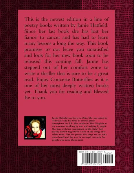 This is the fifth book written by author Jamie Hatfield. This book is one of her most deeply written books which was started after the death of her fiance' Sean to cancer. This one will not leave you unsatisfied. Part of the revenues earned on this book will be donated to CASA which is an organiztion dedicated to helping children who have been abused, neglected and abandoned.Regardless please check them out. http://www.casahelpskids.org/main.asp?id=37