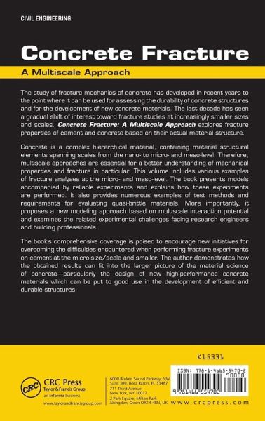 The study of fracture mechanics of concrete has developed in recent years to the point where it can be used for assessing the durability of concrete structures and for the development of new concrete materials. The last decade has seen a gradual shift of interest toward fracture studies at increasingly smaller sizes and scales. Concrete Fracture: A Multiscale Approach explores fracture properties of cement and concrete based on their actual material structure. Concrete is a complex hierarchical material, containing material structural elements spanning scales from the nano- to micro- and…mehr