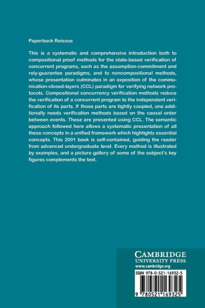This is a systematic and comprehensive introduction both to compositional proof methods for the state-based verification of concurrent programs, such as the assumption-commitment and rely-guarantee paradigms, and to noncompositional methods, whose presentation culminates in an exposition of the communication-closed-layers (CCL) paradigm for verifying network protocols. Compositional concurrency verification methods reduce the verification of a concurrent program to the independent verification of its parts. If those parts are tightly coupled, one additionally needs verification methods based on the causal order between events. These are presented using CCL. The semantic approach followed here allows a systematic presentation of all these concepts in a unified framework which highlights essential concepts. This 2001 book is self-contained, guiding the reader from advanced undergraduate level. Every method is illustrated by examples, and a picture gallery of some of the subject's key figures complements the text.