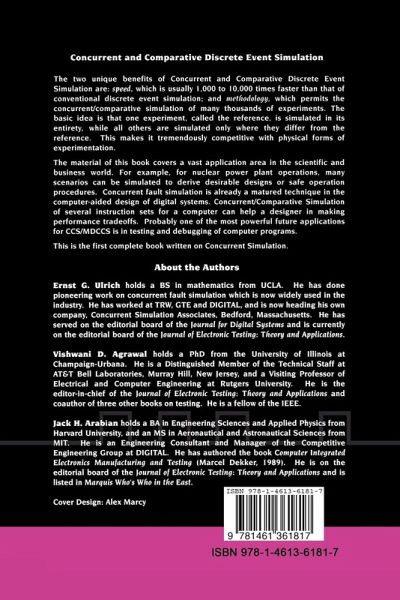 1 Introduction and Overview.- 1.1 Comparative Experimentation.- 1.2 The Evolution of Concurrent Simulation.- 1.3 Historical Facts, Major Features, and Major Advantages of CCS/MDCCS.- 1.4 Conceptual Overviews of CCS and MDCCS.- 1.5 Multi-List-Traversal.- 1.6 Orthogonal and Non-Orthogonal Domains.- 1.7 Statistical Simulation Control.- 1.8 Observation and the Use of Signatures.- 1.9 Selective-Trace/Event-Driven Simulation.- 1.10 Behavioral Modeling for CCS and MDCCS.- 1.11 Conclusion.- 1.12 References.- 2 New Applications.- 2.1 Introduction.- 2.2 The New Applications.- 2.3 References.- 3 History and Background: Digital Logic and Fault Simulation.- 3.1 Introduction.- 3.2 Logic Simulation in the 1950s and 1960s.- 3.3 Accuracy based on the X-State.- 3.4 Compiled Logic Simulation.- 3.5 Selective-Trace and Event-Driven Logic Simulation (Discrete Event Simulation).- 3.6 Event Scheduling and Execution.- 3.7 Simulation beyond the Gate-Level.- 3.8 Switch-Level Simulation.- 3.9 Min-Max Logic Simulation and Timing Verification.- 3.10 Hardware Simulation Engines.- 3.11 Terminology for Digital Logic Simulation.- 3.12 Modeling and Primitive Models.- 3.13 Table-Lookup.- 3.14 The Simulation of Memories.- 3.15 A Neglected Viewpoint - Instruction-Level Modeling and Simulation.- 3.16 High-Level Logic Simulation; Execution of Computer Programs.- 3.17 A Rehearsal Strategy.- 3.18 Faults for Fault and Design Simulation.- 3.19 Simultaneous Fault Simulation Methods.- 3.20 Miscellaneous Comments and Conclusions.- 3.21 References.- 4 Concurrent Fault Simulation.- 4.1 Introduction.- 4.2 Basic Concurrent Fault Simulation.- 4.3 Co-detection, Signatures, and Rehearsal Simulation.- 4.4 Types of Faults.- 4.5 Conclusion.- 4.6 References.- Chapters 5 Multi-List-Traversal.- 5.1 Introduction.- 5.2 MLTVariations.- 5.3 Axioms, Features, and Implementation Strategies.- 5.4 Specifics of Multi-List-Traversal.- 5.5 An MLT-Variation Based on Selective Traversal.- 5.6 Conclusion.- 5.7 References.- 6 Observation.- 6.1 Introduction.- 6.2 Advantages over Conventional, Serial Observation.- 6.3 Signatures, Distances, Sizes, Profiles, and Event Counts.- 6.4 A Per-Experiment Access Count.- 6.5 Conclusion.- 7 Multi-Domain Concurrent and Comparative Simulation.- 7.1 Introduction.- 7.2 MDCCS Basics.- 7.3 Efficiency Through Similarity.- 7.4 Storage Replication.- 7.5 Observation Precision with MDCCS.- 7.6 Further Efficiency Considerations.- 7.7 Multi-List Traversal.- 7.8 The MDCCS Multi-List Traversal.- 7.9 Conclusion.- 7.10 References.- 8 Fault Simulation of Diagnostic Programs.- 8.1 Introduction.- 8.2 An Overview of the Concurrent Simulation of Diagnostic Programs; Detection and Isolation.- 8.3 Memory Simulation; Accurate X-state Simulation for Memories.- 8.4 Observation and Statistics for Diagnostic Investigation.- 8.5 Conclusion: New Diagnostic Strategies.- 8.6 Reference.- 9 Concurrent Software Simulation (CSS).- 9.1 Introduction.- 9.2 An Example of CSS.- 9.3 CSS as a General Purpose Behavioral Modeling Method.- 9.4 Reference.- 10 Min-Max Simulation.- 10.1 Introduction.- 10.2 Terminology.- 10.3 Philosophies, Strategies, and Miscellaneous Facts.- 10.4 Ambiguity Propagation.- 10.5 The S-algorithm; Detecting False Glitches with the Help of S-Experiments.- 10.6 References.- 11 Concurrent Test Generation.- 11.1 Introduction.- 11.2 Fault Simulator Used as Test Evaluator.- 11.3 Fault Simulator Used as Test Generator.- 11.4 Contest Algorithm.- 11.5 Contest Test Generator.- 11.6 Complexity of Concurrent Test Generation.- 11.7 Conclusion.- 11.8 References.- 12 Simulation on Multiprocessors.- 12.1 Introduction.- 12.2 Parallel Processing.- 12.3 Data Parallel Simulation.- 12.4 CFS on MARS Multiprocessor.- 12.5 Conclusion.- 12.6 References.- 13 Conclusion and Future Work.- 13.1 References.