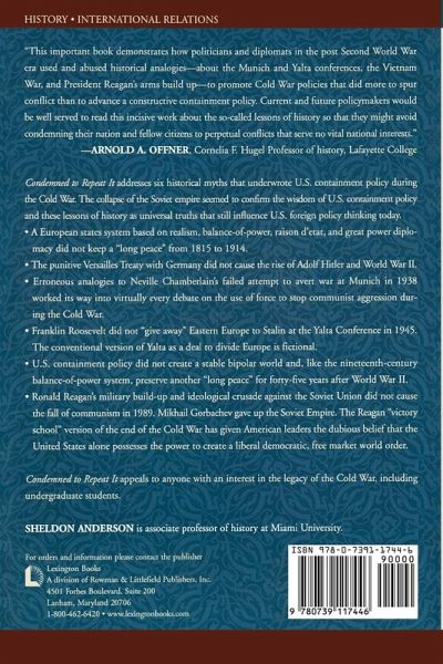 Foreign policymakers frequently invoke historical analogies to make and justify decisions in the belief that history teaches particular lessons. Yet historians and philosophers are not so sure. Arthur Schlesinger once wrote that, "Santayana's aphorism must be reversed; too often it is those who can remember the past who are condemned to repeat it." Condemned to Repeat It addresses six historical myths that underwrote U.S. containment policy during the Cold War. The collapse of the Soviet empire seemed to confirm the wisdom of U.S. containment policy and these "lessons of history" as universal truths that still influence U.S. foreign policy thinking today. 1) A European states system based on realism, balance-of-power, raison d'etat, and great power diplomacy did not keep a 'long peace' from 1815 to 1914. 2) The punitive Versailles Treaty with Germany did not cause the rise of Adolf Hitler and World War Two. 3) Erroneous analogies to Neville Chamberlain's failed attempt to avert war at Munich in 1938 worked its way into virtually every debate on the use of force to stop communist aggression during the Cold War. 4) Franklin Roosevelt did not "give away" Eastern Europe to Stalin at the Yalta Conference in 1945. The conventional version of Yalta as a deal to divide Europe is fictional. 5) U.S. containment policy did not create a stable bi-polar world, and like the nineteenth-century balance-of-power system, preserve another "long peace" for forty-five years after World War Two. 6) Ronald Reagan's military build-up and ideological crusade against the Soviet Union did not cause the fall of communism in 1989. Mikhail Gorbachev gave up the Soviet Empire. The Reagan 'victory school' version of the end of the Cold War has given American leaders the dubious belief that the United States alone possesses the power to create a liberal democratic, free market world order. Condemned to Repeat It appeals to anyone with an interest in the legacy of the Cold War, including undergraduate students.