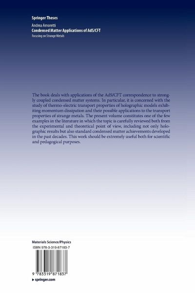 The book deals with applications of the AdS/CFT correspondence to strongly coupled condensed matter systems. In particular, it concerns with the study of thermo-electric transport properties of holographic models exhibiting momentum dissipation and their possible applications to the transport properties of strange metals. The present volume constitutes one of the few examples in the literature in which the topic is carefully reviewed both from the experimental and theoretical point of view, including not only holographic results but also standard condensed matter achievements developed in the past decades. This work might be extremely useful both for scientific and pedagogical purposes.