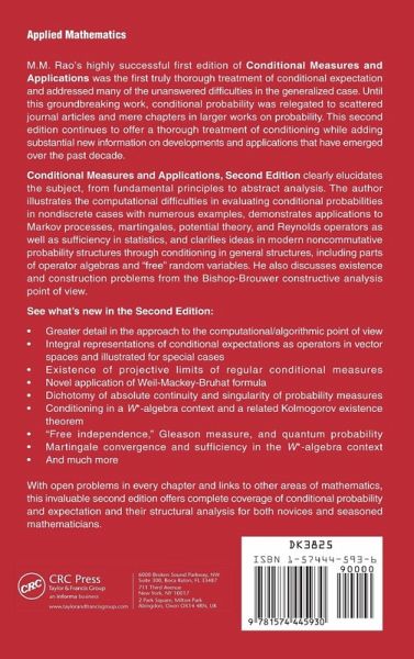 The second edition of this authoritative text offers an in-depth treatment of all aspects of conditional expectations and probability measures and their structural analysis. However, what makes this the definitive reference on conditional measures is the author's keen ability to link theory with practical applications. The author covers applications in sufficiency, Markov processes, and martingales. He also illustrates the difficulties in calculating conditional expectations for continuous multivariate distributions and methods for correct solutions in such cases. Each chapter concludes with several open-ended problems that reinforce principles and promote practical problem solving.