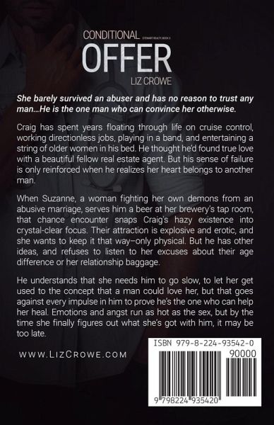She barely survived an abuser and has no reason to trust any man...He is the one man who can convince her otherwise. Craig has spent years floating through life on cruise control, working directionless jobs, playing in a band, and entertaining a string of older women in his bed. He thought he'd found true love with a beautiful fellow real estate agent. But his sense of failure is only reinforced when he realizes her heart belongs to another man. When Suzanne, a woman fighting her own demons from an abusive marriage, serves him a beer at her brewery's tap room, that chance encounter snaps Craig's hazy existence into crystal-clear focus. Their attraction is explosive and erotic, and she wants to keep it that way-only physical. But he has other ideas, and refuses to listen to her excuses about their age difference or her relationship baggage. He understands that she needs him to go slow, to let her get used to the concept that a man could love her, but that goes against every impulse in him to prove he's the one who can help her heal. Emotions and angst run as hot as the sex, but by the time she finally figures out what she's got with him, it may be too late.