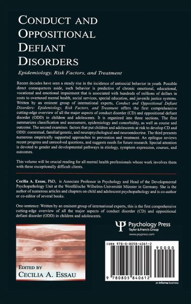 Recent decades have seen a steady rise in the incidence of antisocial behavior in youth. Possible direct consequences aside, such behavior is predictive of chronic emotional, educational, vocational, and emotional impairment that is associated with hundreds of millions of dollars in costs to overtaxed mental health, social services, special education, and juvenile justice systems. Written by an eminent group of international experts, Conduct and Oppositional Defiant Disorders: Epidemiology, Risk Factors, and Treatment offers the first comprehensive cutting-edge overview of all the major aspects of conduct disorder (CD) and oppositional defiant disorder (ODD) in children and adolescents. It is organized into three sections. The first summarizes classification and assessment, epidemiology and comorbidity, as well as course and outcome. The second examines factors that put children and adolescents at risk to develop CD and ODD: contextual, familial/genetic, and neuropsychological and neuroendocrine. The third presents numerous empirically supported approaches to prevention and treatment. An epilogue reviews recent progress and unresolved questions, and suggests needs for future research. Special attention is devoted to gender and developmental pathways in etiology, symptom expression, courses, and outcomes. This volume will be crucial reading for all mental health professionals whose work involves them with these exceptionally difficult clients.