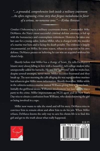 Conduct Unbecoming is a military courtroom drama. Commander Mike DeMarco, the Navy's most successful criminal defense attorney, is fed up with the bureaucracy and contemplates retirement. However, he takes one last case for a young sailor, Joshua Miller, who is charged with the murder of a marine war hero and is facing the death penalty. The evidence is largely circumstantial, yet Miller, for some reason, refuses to cooperate in his own defense. DeMarco presses on believing he can win an acquittal without his client's help. Shortly before trial Miller has a change of heart. He tells DeMarco a bizarre story about falling in love with a beautiful, rich college student who unexpectedly called his barracks. He and his 'girlfriend' talk for weeks but, despite several attempts, never meet. Miller becomes frustrated and they break up. The next morning she calls alleging she was raped by three marines but refuses to give Miller more information. Shortly thereafter, Miller while in the cafeteria notices a marine named Williams giving him a 'funny look.' Initially the girlfriend denies Williams's involvement but later says he was a party to the crime. Miller impersonates an NCIS agent and on New Year's Day tries to obtain a confession from Williams, who denies knowing the girl or being involved in a rape. Miller now wants to take the stand and tell his story. DeMarco tries to convince him to remain silent and allow him to do his job. When Miller refuses, DeMarco knows the only way to save his clients life is to find this girl and get to the truth about what really happened.