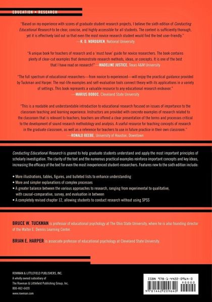 Conducting Educational Research is geared to help graduate students understand and apply the most important principles of scholarly investigation. The clarity of the text and the numerous practical examples help to reinforce important concepts and key ideas, increasing the efficacy of the text for even the most inexperienced student-researchers.