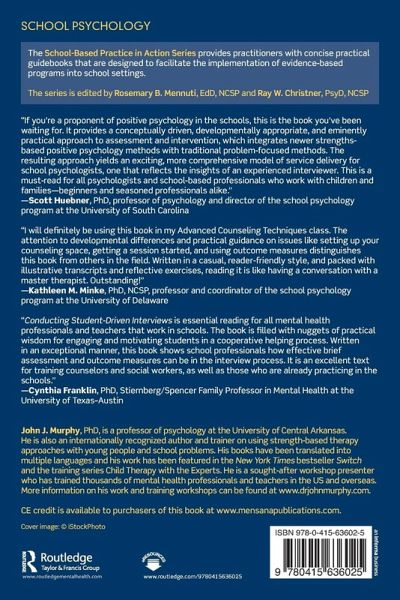 This user-friendly book equips school practitioners with practical skills and strategies for conducting student-driven interviews-conversations that invite students of all ages to take charge of school-behavior problems and build solutions based on their own strengths and resources. In contrast to traditional interviewing models that approach behavior problems by focusing on what is wrong and missing in students' lives, student-driven interviews help students discover and apply what is right and working in their lives-successes, strengths, values, and other "natural resources." In Conducting Student-Driven Interviews, readers will learn how to customize conversations one student at a time using ideas and techniques that have been field tested for application to real problems of real students in the real world of schools. The book's positive, student-driven approach is illustrated through dozens of real-life dialogues and examples involving a wide range of students and problems, and the author's irrepressible faith in students' ability to change jumps off of every page. School-based professionals of all backgrounds will find Conducting Student-Driven Interviews an invaluable roadmap for increasing student involvement and involving students in every aspect of their care, from goal development through evaluation of services.