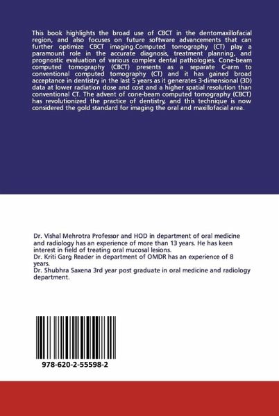 This book highlights the broad use of CBCT in the dentomaxillofacial region, and also focuses on future software advancements that can further optimize CBCT imaging.Computed tomography (CT) play a paramount role in the accurate diagnosis, treatment planning, and prognostic evaluation of various complex dental pathologies. Cone-beam computed tomography (CBCT) presents as a separate C-arm to conventional computed tomography (CT) and it has gained broad acceptance in dentistry in the last 5 years as it generates 3-dimensional (3D) data at lower radiation dose and cost and a higher spatial resolution than conventional CT. The advent of cone-beam computed tomography (CBCT) has revolutionized the practice of dentistry, and this technique is now considered the gold standard for imaging the oral and maxillofacial area.