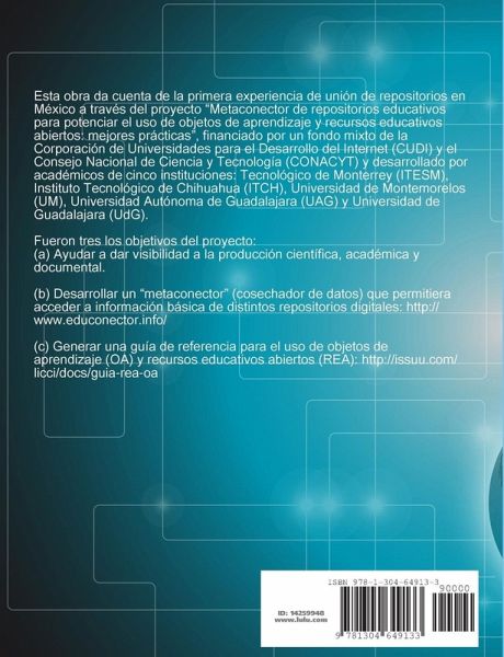 Esta obra da cuenta de la primera experiencia de unión de repositorios en México a través del proyecto "Metaconector de repositorios educativos para potenciar el uso de objetos de aprendizaje y recursos educativos abiertos: mejores prácticas"