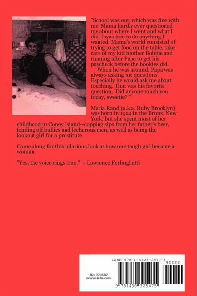 Maria Rand was born in 1924 in the Bronx, New York but spent most of her childhood in Coney Island, running away from bullies, sweeping up bathhouses, trying to run away and join the circus and finally turning into a con-woman with a heart of gold. This anthology of short stories tells of her wild, hilarious and sometimes heart-breaking life.