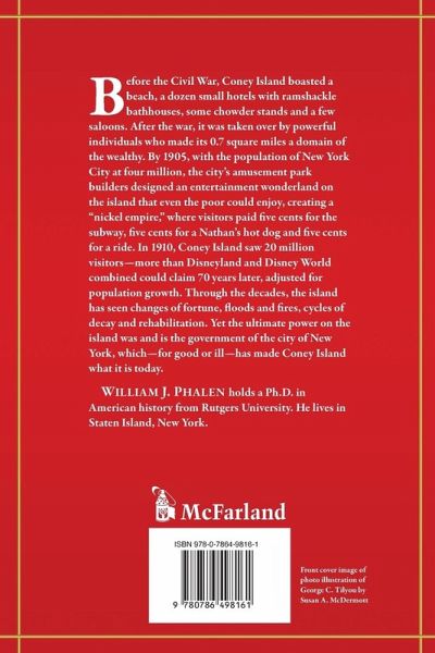 "Before the Civil War, Coney Island boasted a beach, a dozen small hotels with ramshackle bathhouses, some chowder stands and a few saloons. After the war, it was taken over by powerful individuals who made its 0.7 square miles a domain of the wealthy. Through the decades, the island has seen changes of fortune, floods and fires, cycles of decay and rehabilitation. Yet the ultimate power on the island was and is the government of the city of New York, which--for good or ill--has made Coney Island what itis today"--