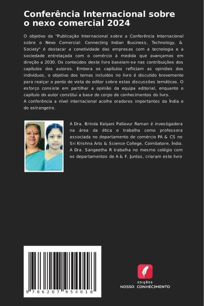 O objetivo da "Publicação Internacional sobre a Conferência Internacional sobre o Nexo Comercial: Connecting Indian Business, Technology, & Society" é destacar a conetividade das empresas com a tecnologia e a sociedade entrelaçada com o comércio à medida que avançamos em direção a 2030. Os conteúdos deste livro baseiam-se nas contribuições dos capítulos dos autores. Embora os capítulos reflictam as opiniões dos indivíduos, o objetivo dos temas incluídos no livro é discutido brevemente para realçar o ponto de vista do editor sobre estas discussões temáticas. O esforço consiste em partilhar a opinião da equipa editorial, enquanto o capítulo do autor constitui a base do corpo de conhecimentos do livro.A conferência a nível internacional acolhe oradores importantes da Índia e do estrangeiro.