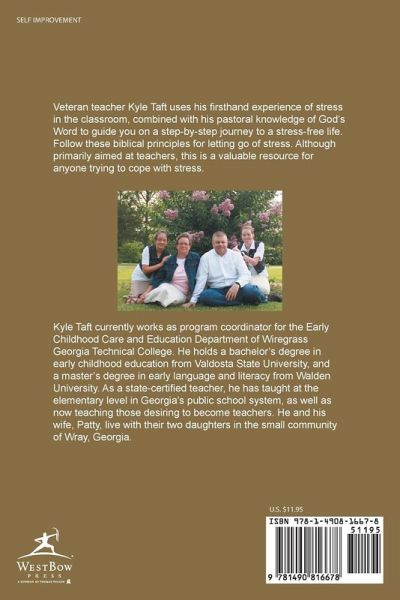 Veteran teacher Kyle Taft uses his firsthand experience of stress in the classroom, combined with his pastoral knowledge of God's Word to guide you on a step-by-step journey to a stress-free life. Follow these biblical principles for letting go of stress. Although primarily aimed at teachers, this is a valuable resource for anyone trying to cope with stress.