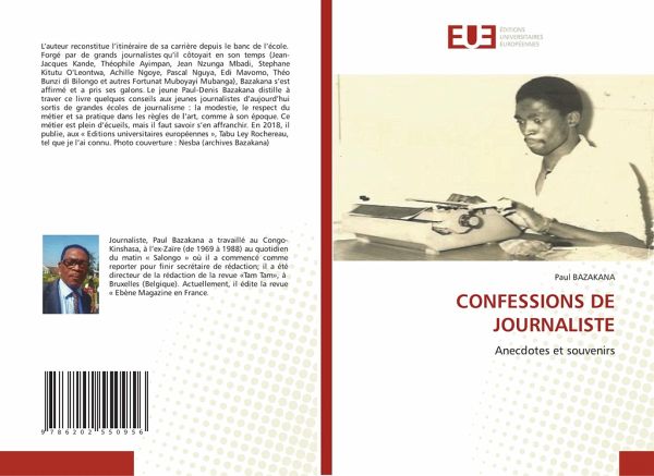 L'auteur reconstitue l'itinéraire de sa carrière depuis le banc de l'école. Forgé par de grands journalistes qu'il côtoyait en son temps (Jean-Jacques Kande, Théophile Ayimpan, Jean Nzunga Mbadi, Stephane Kitutu O'Leontwa, Achille Ngoye, Pascal Nguya, Edi Mavomo, Théo Bunzi di Bilongo et autres Fortunat Muboyayi Mubanga), Bazakana s'est affirmé et a pris ses galons. Le jeune Paul-Denis Bazakana distille à traver ce livre quelques conseils aux jeunes journalistes d'aujourd'hui sortis de grandes écoles de journalisme : la modestie, le respect du métier et sa pratique dans les règles de l'art, comme à son époque. Ce métier est plein d'écueils, mais il faut savoir s'en affranchir. En 2018, il publie, aux ' Editions universitaires européennes ', Tabu Ley Rochereau, tel que je l'ai connu. Photo couverture : Nesba (archives Bazakana)