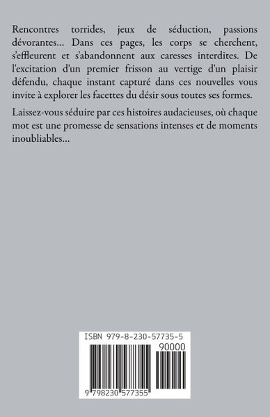 Rencontres torrides, jeux de séduction, passions dévorantes... Dans ces pages, les corps se cherchent, s'effleurent et s'abandonnent aux caresses interdites. De l'excitation d'un premier frisson au vertige d'un plaisir défendu, chaque instant capturé dans ces nouvelles vous invite à explorer les facettes du désir sous toutes ses formes. Laissez-vous séduire par ces histoires audacieuses, où chaque mot est une promesse de sensations intenses et de moments inoubliables...