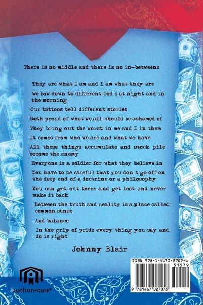 They are what I am and I am what they are We both bow down to different God's in the morning and at night Our tatoos tell different stories Both proud of what we should be ashamed of They bring out the worst in me and I in them All these things accumulate and become the enemy It comes from what we have and who we are Every one is a soldier for what they believe in You have be careful that you don't go off on the deep end of a philosophy or doctrine You can get out there and get lost and never make it back Between the truth and reality is a place called common sense and balance In the grip of pride everything you say and do is right.