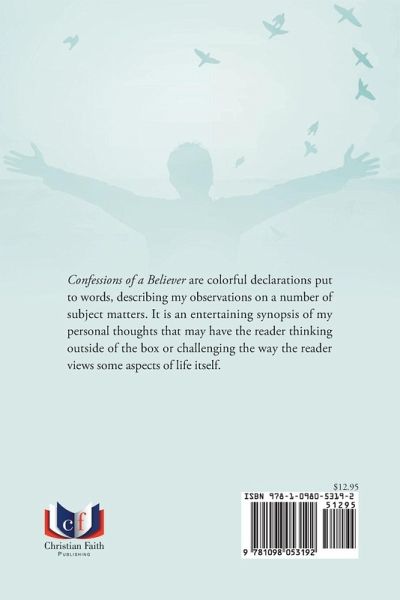 Confessions of a Believer are colorful declarations put to words, describing my observations on a number of subject matters. It is an entertaining synopsis of my personal thoughts that may have the reader thinking outside of the box or challenging the way the reader views some aspects of life itself.