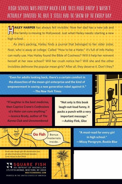 High school was pretty much like this huge party I wasn't actually invited to, but I still had to show up to every day. Hailey Harper has always felt invisible. Now her dad has a new job and the family is moving to Hollywood. Just what Hailey needs: to start a new high school. As she's packing, Hailey finds a journal that belonged to her older sister, Noel, who is away at college. Called "How to be a Hater," it's full of info Hailey can really use. Has Hailey found the Bible of Coolness? Will it help her reinvent herself at her new school? Will her crush notice her? Will she and the other Invisibles dethrone the popular mean girls? After all, they deserve it. Don't they? In Confessions of a Hater, Caprice Crane's funny-and deeply felt-observations about high school, bullies, popularity, friendship, and romance will leave teens thinking . . . and talking.