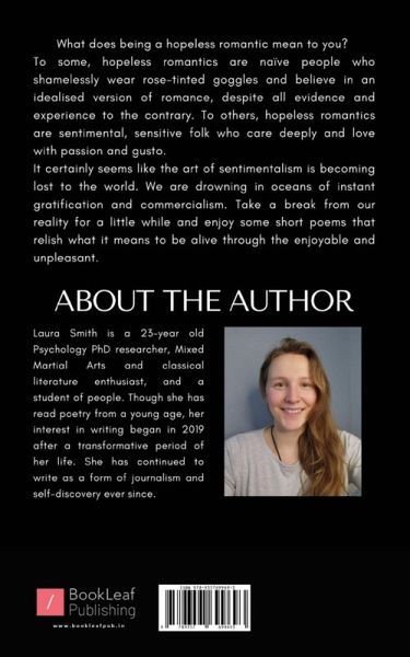""What does being a hopeless romantic mean to you? To some, hopeless romantics are naïve people who shamelessly wear rose-tinted goggles and believe in an idealised version of romance, despite all evidence and experience to the contrary. To others, hopeless romantics are sentimental, sensitive folk who care deeply and love with passion and gusto. It certainly seems like the art of sentimentalism is becoming lost to the world. We are drowning in oceans of instant gratification and commercialism. Take a break from our reality for a little while and enjoy some short poems that relish what it means to be alive through the enjoyable and unpleasant.""