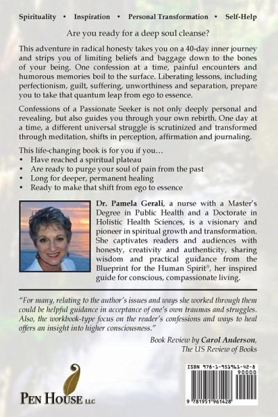 After many years as a dedicated seeker, Dr. Pamela Gerali hit a wall. An energy-sapping virus forced her to examine her priorities and refocus on the Blueprint for the Human Spirit®, her holistic model for conscious, compassionate living. She was guided to meditate and journal confessions for forty days. Baffled by the directive from her "inner guru," she explored the significance of the number forty and discovered it represents rebirth. Three days later, Pamela arose early, went to her sacred space, lit a candle, and paused in the silence. A word sprang into her awareness: discipline! She picked up her pen and wrote a confession about her negative reaction to the topic. Memories flowed onto the page-painful experiences, humorous recollections and powerful lessons. Finally, a positive affirmation that encapsulated her journey concluded the journal entry.