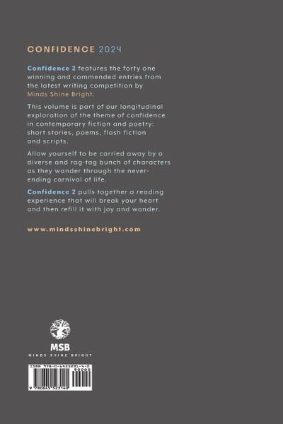 Confidence 2 features the forty one winning and commended stories, poems and scripts from the latest international creative writing competition by Minds Shine Bright. This volume is part of our longitudinal exploration of the theme of confidence in contemporary fiction and poetry. Allow yourself to be carried away by a diverse and rag-tag bunch of characters as they wander through the never ending carnival of life. Confidence 2 pulls together a reading experience that will break your heart and then refill it with joy and wonder.