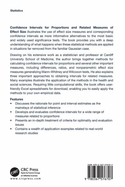 Drawing on his extensive work as a statistician and professor at Cardiff University School of Medicine, the author brings together methods for calculating confidence intervals for proportions and several other important measures, including differences, ratios, and nonparametric effect size measures generalizing Mann-Whitney and Wilcoxon tests. He also explains three important approaches to obtaining intervals for related measures. Many examples illustrate the application of the methods in the health and social sciences. Requiring little computational skills, the book offers user-friendly Excel spreadsheets for download at www.crcpress.com, enabling you to easily apply the methods to your own empirical data.