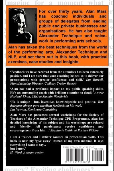 For over thirty years, Alan Mars has coached individuals and groups of delegates from leading public and private businesses and organisations. He has also taught Alexander Technique and voice-work in performing arts schools. Alan has taken the best techniques from the world of the performing arts, Alexander Technique and NLP, and set them out in this book, with practical exercises, case studies and insights.