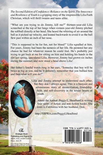 "Confidence: Reliance on the Spirit, The Innocence and Resilience of Youth" is a gripping story of the irrepressible Lilia Faith Christian, which will thrill tweens and teens alike. "What are you trying to do Jimmy, kill me?" thirteen-year-old Lilia screeched at the top of her lungs when sixteen-year-old Jimmy pitched the softball directly at her head. She heard the whirring of air around the ball as it picked up velocity, and leaned backwards to avoid it as the ball flew past within an inch of her nose."This is supposed to be for fun, not for blood!" Lilia squalled at him. For years, Jimmy had been the nemesis of her life. He pestered her any chance he had for whatever reason he could find. He's probably just trying to get back at me for sitting on him and holding his hands in the dirt last spring, speculated Lilia. However, Jimmy had grown six inches during the summer, and now stood a head above Lilia!Her father's fateful words rang in her ears, "Someday that boy will be twice as big as you, and he'll definitely remember that you bullied him and then what will you do?"Lilia and Jimmy attempt to understand each other, but they don't always agree. This is a buoyant and adventurous story of reconciliation, friendship, faith, and self-discovery in the tender hearts of youth.About the Author: Peggy L. Headlund is writing four series of fiction and non-fiction books. She lives in California with her husband, Don.http://SBPRA.com/PeggyLHeadlund
