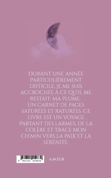 Durant une année particulièrement difficile, je me suis accrochée à ce qu'il me restait: ma plume. Un carnet de pages saturées et raturées. Ce livre est un voyage partant des larmes, de la colère et trace mon chemin vers la paix et la sérénité.