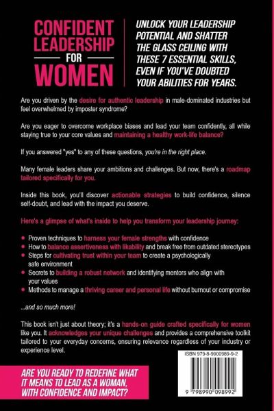 Unlock your leadership potential and shatter the glass ceiling with these 7 essential skills, even if you've doubted your abilities for years. Are you driven by the desire for authentic leadership in male-dominated industries but feel overwhelmed by imposter syndrome? Are you eager to overcome workplace biases and lead your team confidently? Inside this book, you'll discover actionable strategies to build confidence, silence self-doubt, and lead with the impact you deserve. Here's a brief glimpse of what's inside to help you transform your leadership journey: ¿ How to balance assertiveness with likability and break free from outdated stereotypes ¿ Steps for cultivating trust within your team to create a psychologically safe environment ¿ Methods to manage a thriving career and personal life without burnout or compromise ...and there is so much more! This book isn't just about theory; it's a hands-on guide crafted specifically for women like you. It acknowledges your unique challenges and provides a comprehensive toolkit tailored to your everyday concerns, ensuring relevance regardless of your industry or experience level. Are you ready to redefine what it means to lead as a woman, with confidence and impact?