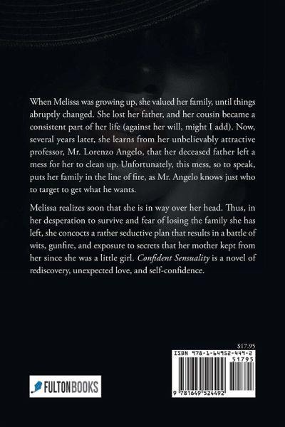 When Melissa was growing up, she valued her family, until things abruptly changed. She lost her father, and her cousin became a consistent part of her life (against her will, might I add). Now, several years later, she learns from her unbelievably attractive professor, Mr. Lorenzo Angelo, that her deceased father left a mess for her to clean up. Unfortunately, this mess, so to speak, puts her family in the line of fire, as Mr. Angelo knows just who to target to get what he wants. Melissa realizes soon that she is in way over her head. Thus, in her desperation to survive and fear of losing the family she has left, she concocts a rather seductive plan that results in a battle of wits, gunfire, and exposure to secrets that her mother kept from her since she was a little girl. Confident Sensuality is a novel of rediscovery, unexpected love, and self-confidence.