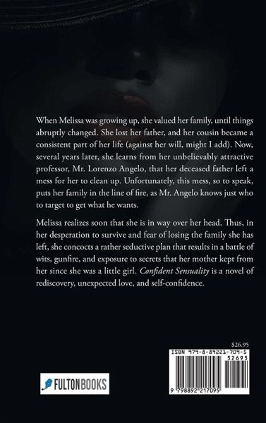 When Melissa was growing up, she valued her family, until things abruptly changed. She lost her father, and her cousin became a consistent part of her life (against her will, might I add). Now, several years later, she learns from her unbelievably attractive professor, Mr. Lorenzo Angelo, that her deceased father left a mess for her to clean up. Unfortunately, this mess, so to speak, puts her family in the line of fire, as Mr. Angelo knows just who to target to get what he wants. Melissa realizes soon that she is in way over her head. Thus, in her desperation to survive and fear of losing the family she has left, she concocts a rather seductive plan that results in a battle of wits, gunfire, and exposure to secrets that her mother kept from her since she was a little girl. Confident Sensuality is a novel of rediscovery, unexpected love, and self-confidence.