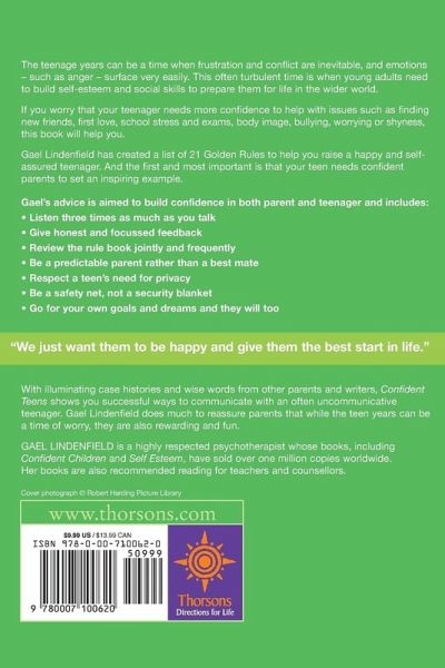 New Lindenfield guide to helping teenagers and young adults stay confident and feel good about themselves. Teens today need more help than ever. Being expected to grow up quickly; facing the problems of immense peer pressure; facing exam challenges – and getting to grips with the many changes and events of the teenage years can be exceedingly daunting. Confidence levels and the grown-up personality are moulded in your teens, and setbacks around this time can seriously impact on self-esteem in later life. However, confident teenagers should grow up to become confident people and this book shows how parents can best understand, support, befriend and give confidence to their teenage child. Written for adults, this is a candid and sympathetic guide which will help parents to be prepared for the roller coaster teenage years. Why it’s important to acknowledge that times have changed. • Why experimentation is important to your teen’s identity and well being. • How to nurture your child through a bad patch. • How to help your child develop healthy independence. • What teenagers worry about. Where to start with sexuality, drugs, work, college and the future. The book includes tips on how to deal with typical teenager scenarios and has a series of Golden Rules for parents to follow.