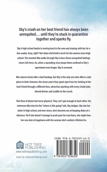 Sky's high school bestie is moving back to the area and staying with her for a few weeks. Easy, right? Not when she'd held a torch for the woman since high school. The moment Mia walks through Sky's door, those unrequited feelings return full-force. So, when a spreading virus keeps them confined in Sky's apartment even longer, Sky is screwed. Mia returns home after a bad breakup, but Sky is the only one who offers a safe place to land. However, the seven years they spent apart has her looking at her best friend through a different lens, attraction sparking with every inside joke, shared dinner, and cuddle on the couch. That flare of desire fast turns physical. They can't get enough of each other. Yet, whenever Mia tries for the "where is this going" talk, Sky dodges. Sky lost her sister in high school, and ever since, she's become ace at keeping dates at a distance. Yet if she doesn't manage to push past her own fears, she might lose her one shot at happiness with the woman she's waited a lifetime for.