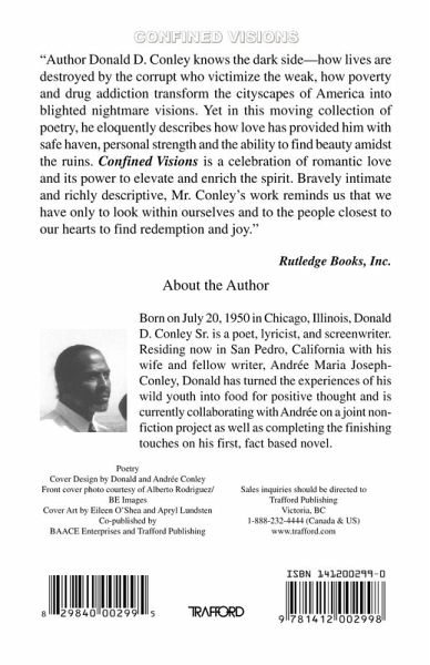 Born on July 20, 1950 in Chicago, Illinois, Donald D. Conley Sr. is a poet, lyricist, and screenwriter. Residing now in San Pedro, California with his wife and fellow writer, Andree Maria Joseph-Conley, Donald has turned the experiences of his wild youth into food for positive thought and is currently collaborating with Andree on a joint non-fiction project as well as completing the finishing touches on his first, fact based novel.